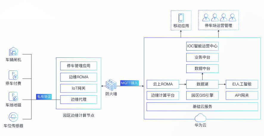 停车管理业务主要包括车辆数据(车牌、使用者、车型等)、RFID远距离卡、人员识别、车位数据等静态数据,同时停车管理也包括车辆实时进出信息,车位使用率信息和停车缴费等动态数据;园区运营者需要根据实时数据(静态数据结合动态数据)进行园区车辆的及时管理和分析。
